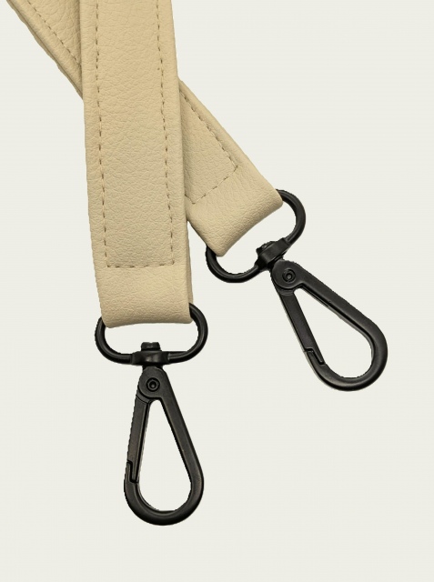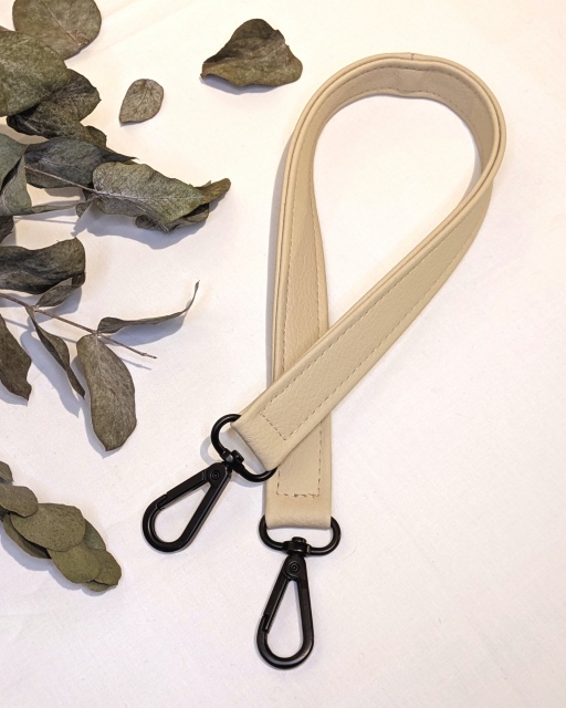 Handgemachter Taschenhenkel aus beigem, veganem Bio-Kunstleder mit schwarzen Karabinern