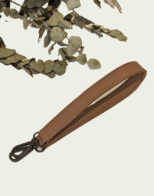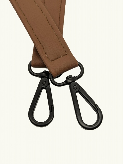 Handgemachter Taschenhenkel aus braunem, veganem Bio-Kunstleder mit schwarzen Karabinern