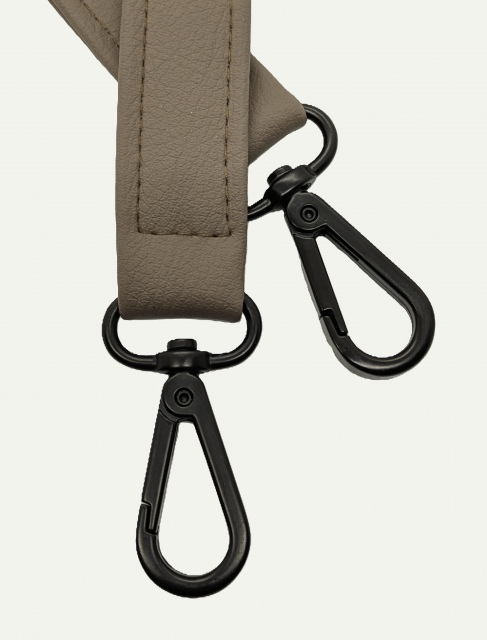 Handgemachter Taschenhenkel aus mocca farbenem, veganem Bio-Kunstleder mit schwarzen Karabinern
