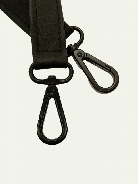 Handgemachter Taschenhenkel aus schwarzem, veganem Bio-Kunstleder mit schwarzen Karabinern